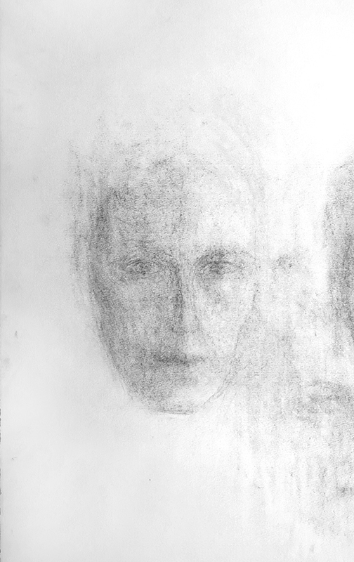 Après des semaines à l’encre, jereprends l’humble travail de dessin au fusain, celui qui ne peut pas mentir.