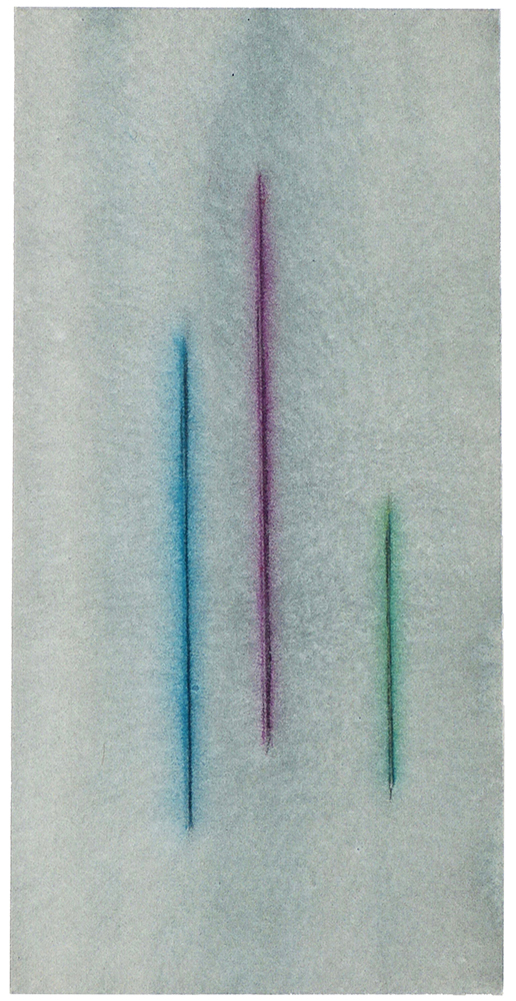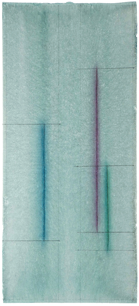Une ligne extraite du réel, extraite du chaos environnant, du désordre, sortie de son contexte anecdotique. Recréer cet espace dans sa plus grande épure. Une présence sensorielle de la couleur, comme irradiant du centre.